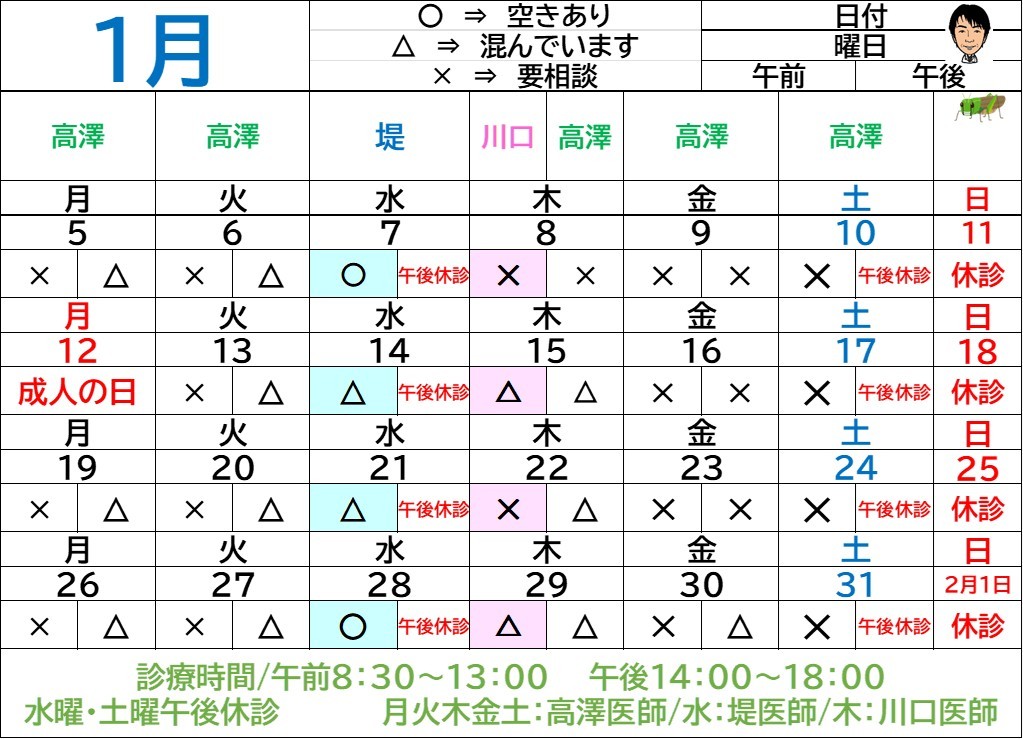 1月混雑予想を更新しました。来院の参考になさってください🍡