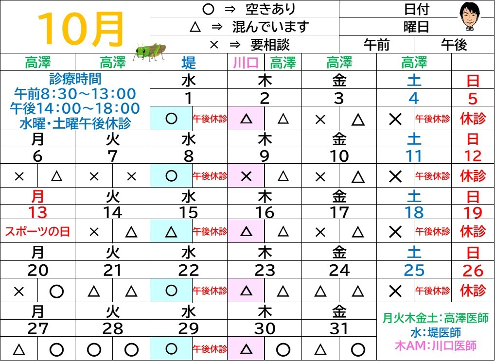 10月混雑予想を更新しました。来院の参考になさってください🍡